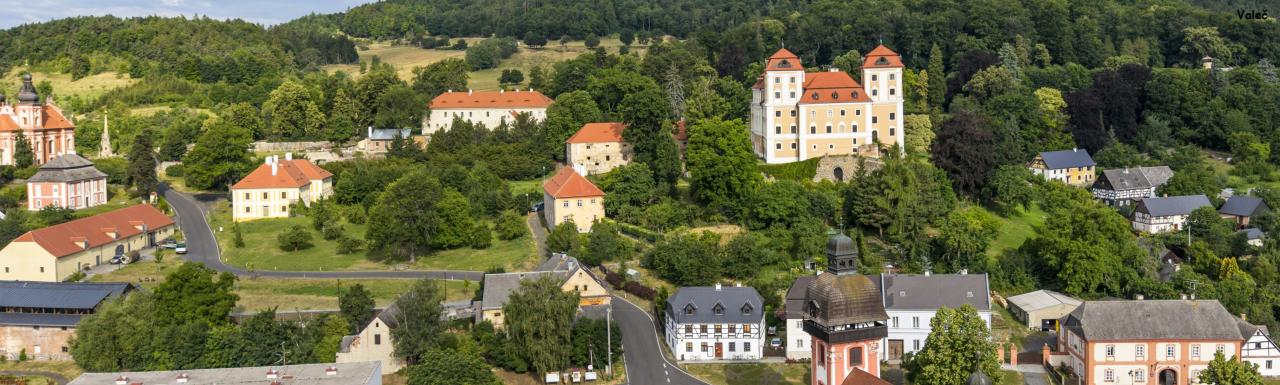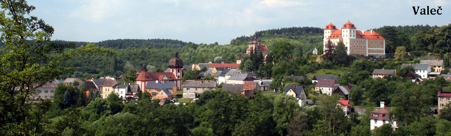 Ačkoli se Valeč poprvé objevuje v písemných pramenech až k roku 1358, osídlení zde jistě vzhledem k příznivé poloze na úpatí jihovýchodních Doupovských hor existovalo mnohem dříve. Dnešní název vznikl někdy v 1. polovině 13. století ze jména Válek (původně snad Valentin), který zde měl dvůr. V roce 1517 koupil Valeč Kryštof Štampach - tento rod pak během dvou staletí podstatně ovlivnil tvářnost městečka, stejně jako hrabata z Globenu od roku 1721. Dominantní stavbu Valče představuje bezesporu zámek, na jehož místě stál kdysi gotický hrad, později renesančně přestavěný. Stavba byla za hraběte Jana Kryštofa Kagera ze Štampachu částečně barokně upravena staviteli F.Barellim a po něm G. A. Biana Rossou, k dokončení velkolepé barokní přestavby pak došlo až za Globenů v letech 1730-1733. Zámek pak byl ještě upraven novobarokně v letech 1895-1896. Dne 2. dubna 1976 stavbu značně poškodil požár, jehož následky se bohužel dodnes nepodařilo vzhledem k nedostatečným finančním prostředkům odstranit. K zámku neodmyslitelně patří též rozsáhlý a proslulý park budovaný stejně jako zámecká budova ve dvou stavebních etapách. Zejména druhá fáze jej obohatila o známou galerii plastik z dílny Matyáše Bernarda Brauna, z nichž se jich dodnes dochovalo 27. Hned po Šporkově východočeském Kuksu tak Valeč vlastní nejpočetnější soubor kopií soch tohoto umělce. Významnou památku Valče představuje v neposlední řadě zámecký kostel Nejsvětější Trojice, podstavený architektem G. A. Biana Rossou v letech 1710 - 1728. Před ním pak sloup Nejsvětější Trojice F. M. Kaňky z roku 1725 se sochami českých patronů z dílny M. B. Brauna. V městečku jsou k vidění i další zajímavé stavby, např. budova fary či městského kostela sv. Jana Křtitele. Valeč by měla být pro svou architektonickou krásu a citlivé zasazení do překrásné krajiny Doupovska často vyhledávaným místem. Až budou všechny její památky nakonec opraveny, stane se jistě barokním skvostem západních Čech i barokním klenotem Evropy. Od roku 1990 patří k obci také integrované obce Jeřeň, Kostrčany, Nahořečice a Velký Hlavákov, které částečně bývaly součástí valečského panství.